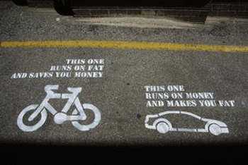 We can raise awareness about how individual initiative is never the whole story. The built environment affects our choices in daily life, wherever we live. In middle class suburban communities, would you walk more if there were any places worth working to within walking distance? Would your kids walk to school or walk around the neighborhood if there were real pedestrian crossings with traffic signals instead of zebra lines painted in the street where you take your life into your hands any time you try to cross?