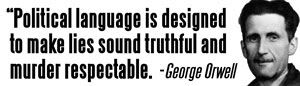 But the main reason for choosing Orwell is the expertise he has in recognizing the deceptive potential of language. If “eternal vigilance†is indeed the price of liberty, Orwell would insist that nothing needs more vigilance than the language that politicians speak. In his famous essay “Politics and the English Language†(1946), Orwell argues that modern political language is “largely the defense of the indefensible,†for it is meant primarily to “make lies sound truthful and murder respectable.†Since it aims at masking the truth and/or making it palatable, political language consists “largely of euphemism, question-begging and sheer cloudy vagueness.â€