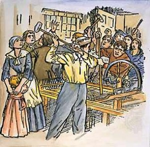 * The years 2011-2013 mark the 200th anniversary of the Luddite Rebellion that began in England with protests against the enclosure movement in the late 1700s and peaked with the machine-smashing endeavors of village weavers in 1811-1813. The effort was so threatening to the powers-that-could-see-profit-a’comin’ that they amassed more troops to fight the uprising than were mobilized against Napoleon. In the end the government murdered, imprisoned, or sent the activists to Australia — and transformed the word “Luddite” into an anti-progress jab and a put-down with connotations of ridiculousness.