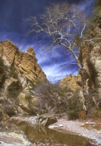 Then as a squall shifted south, I could see in the distance a column of smoke that caused my hair to rise — it appeared to me that the small town of Yarnell was on fire. Without hesitation, I leaped into the car and shot toward Skull Valley, having to slow down once in the midst of an intense downpour. The closer I got to Peeple’s Valley, the more my concern intensified, and I made a decision that gave me a perfect vantage point on a ridge north of the fire. If I had continued any farther down the highway, I would have been stopped by emergency vehicles and stuck in a line of other cars prohibited from moving farther. (more…)
